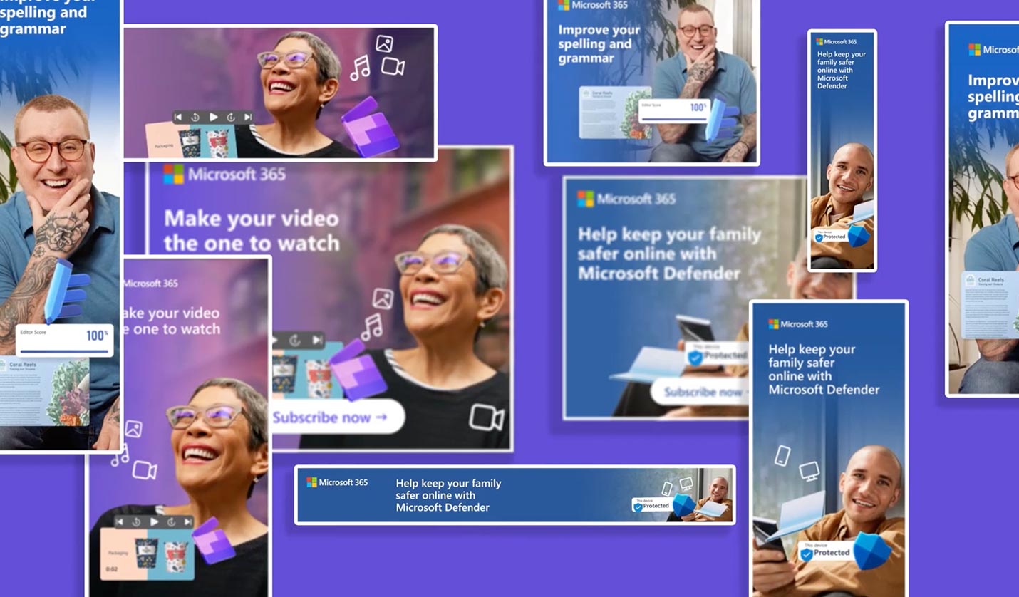 My team and I have created hundreds of thousands of assets for Microsoft across a wide range of products and campaigns. This gallery demonstrates our ability to adapt to different brand styles, platforms, and objectives.